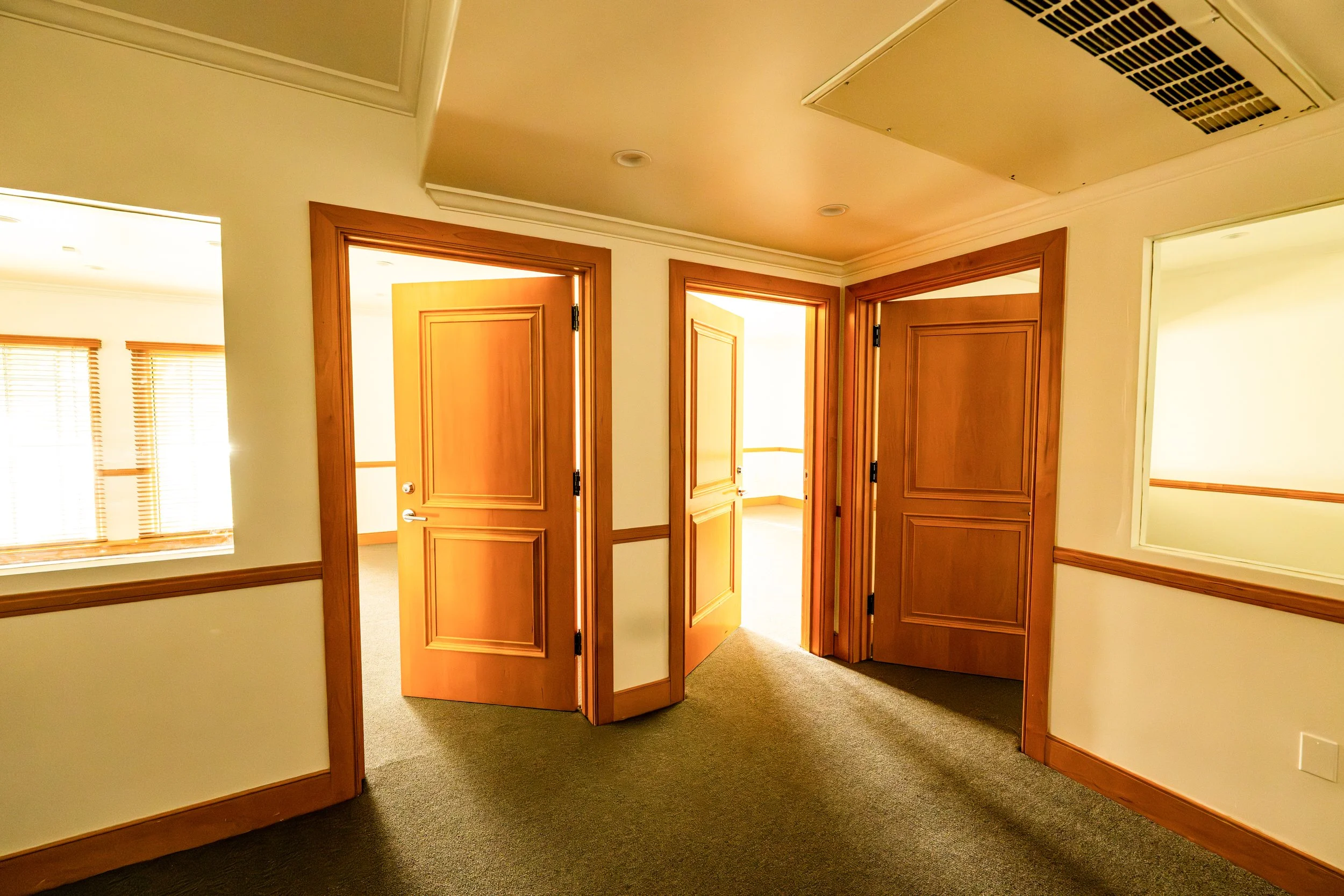 This fully remodeled, ground-floor suite is thoughtfully laid out for professionals who value privacy and ease. The 1,200-square-foot space includes three private offices and a small open area, offering flexibility for focused work, client meetings, or collaborative use. One office includes a brownstone fireplace, adding warmth and character to the environment.